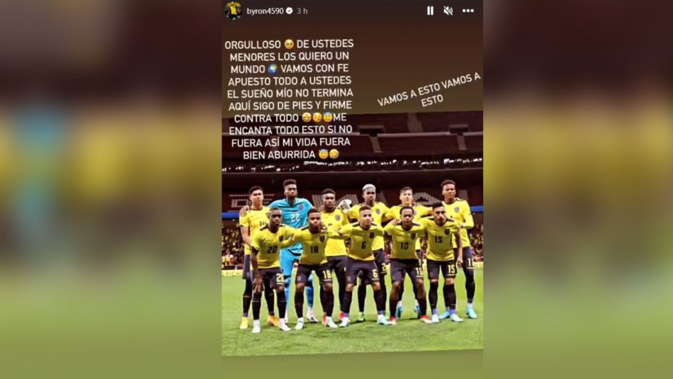 “Orgulloso de ustedes. Los quiero un mundo. Vamos con fe, apuesto todo a ustedes", escribió en una "story" de Instagram el jugador. "El sueño mío no termina aquí, sigo de pie y firme contra todo”, agregó Castillo junto a una foto de sus compañeros de selección.