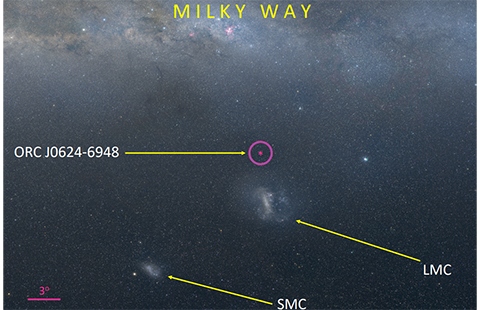 Un equipo internacional de investigadores descubrió un extraño objeto circular cercano a la Gran Nube de Magallanes, una galaxia colindante a nuestra Vía Láctea. Por su ubicación en el espacio, se podría tratar del primer objeto de este origen.