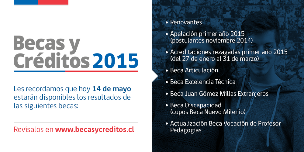 El ministerio de Educación publicó este jueves 14 de mayo los resultados de la renovación de las Becas y Créditos para alumnos antiguos, así como la actualización de los beneficiados para quienes ingresaron este 2015 al Primer Año de la educación superior.