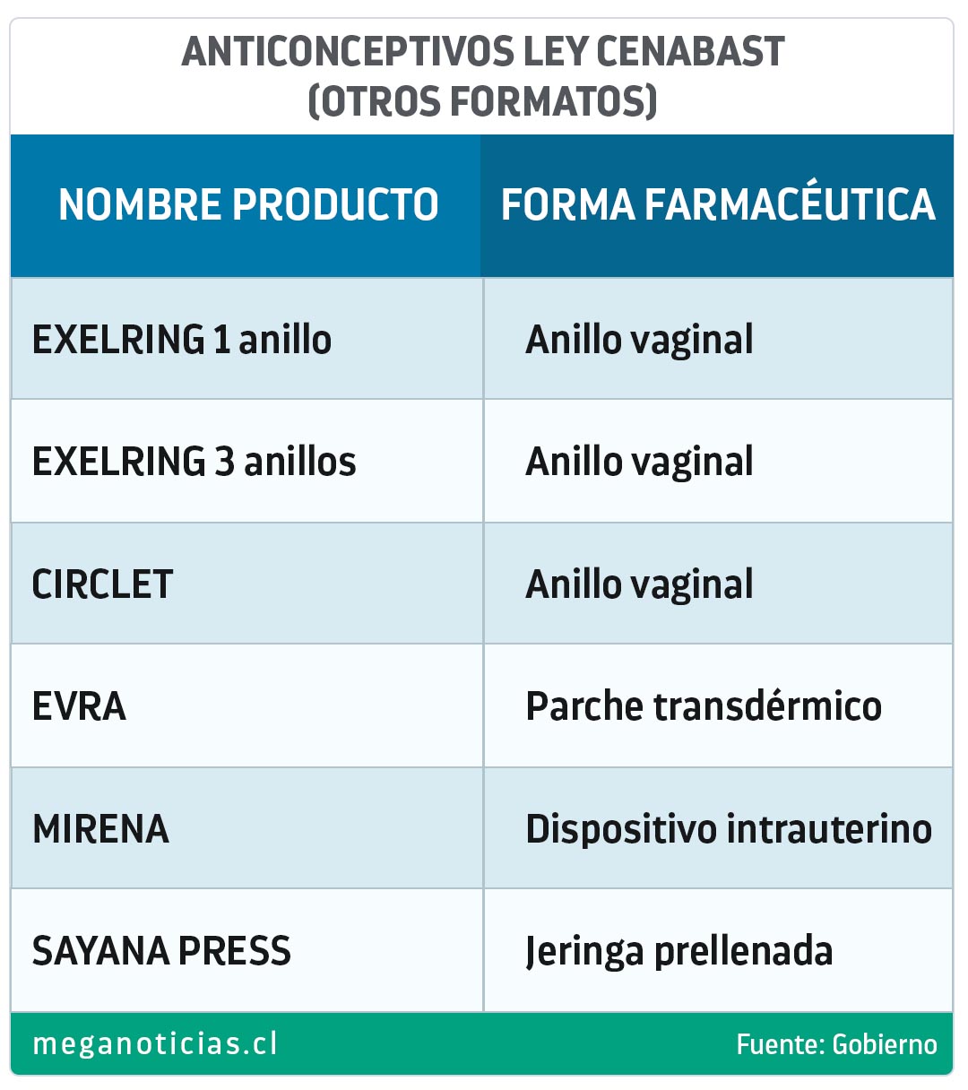 En el caso de otros métodos anticonceptivos, los que se incorporaron a la Ley Cenabast son: