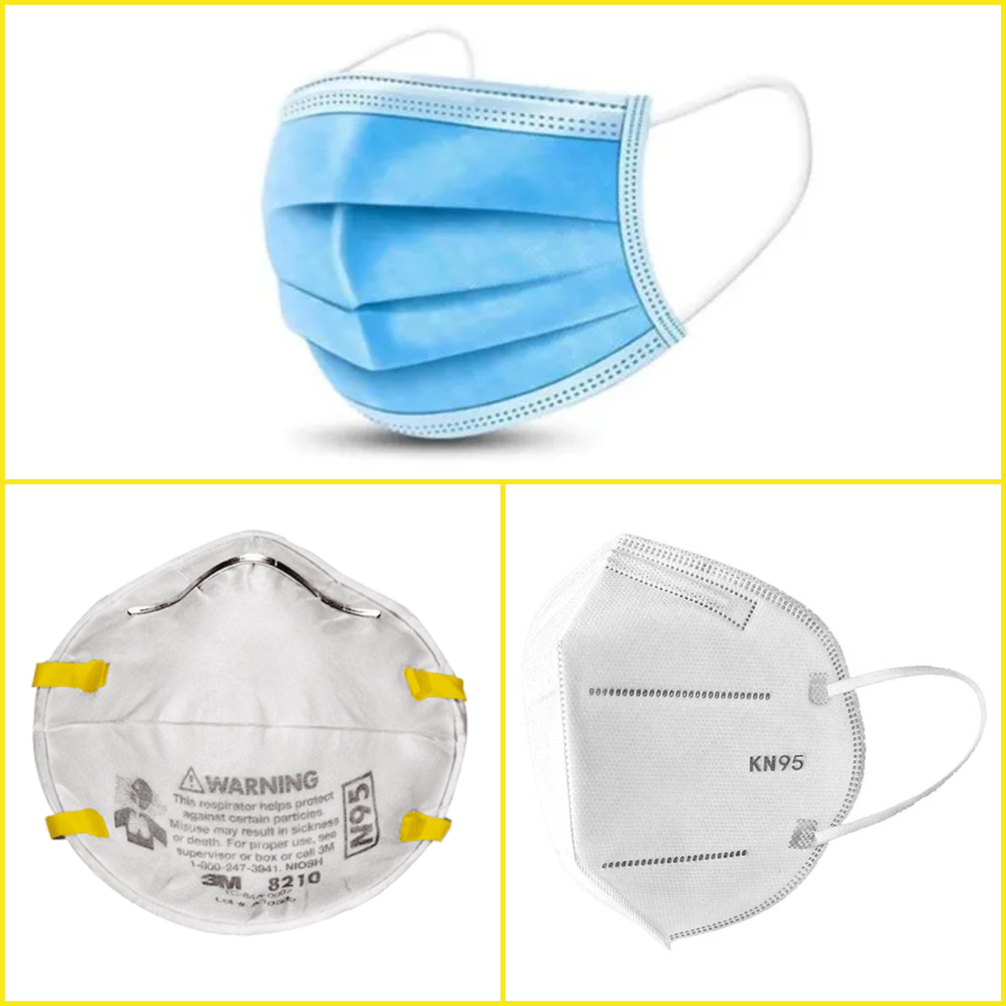 - Las mascarillas médicas, quirúrgicas, de procedimiento y de tres pliegues.