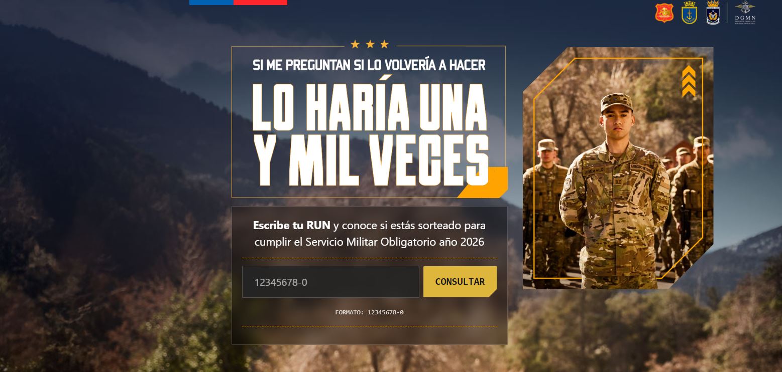 Para saber si debes cumplir con la obligación en 2026, ingresa tu RUN sin puntos y con guion en la página serviciomilitar.cl.