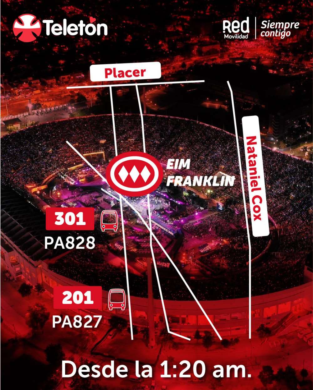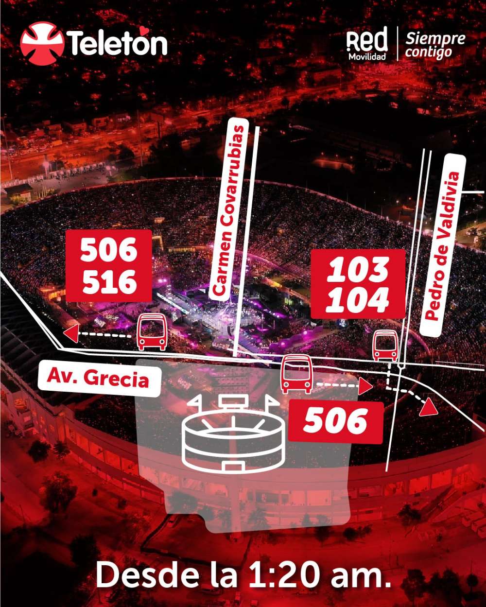 A pocas horas de que inicie la versión 2025 de la Teletón, Red Movilidad anunció un refuerzo del transporte público para el cierre del evento que se llevará a cabo la noche del sábado 29 de noviembre, en el Estadio Nacional.