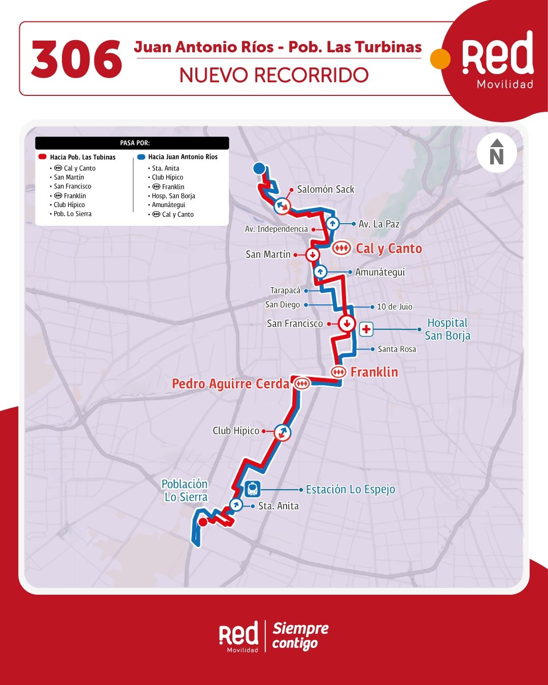 En tanto, el servicio H06 pasó a llamarse 306 y extendió su trazado al norte del río Mapocho, para así conectar la población Lo Sierra de Lo Espejo con la zona comercial de Independencia.
