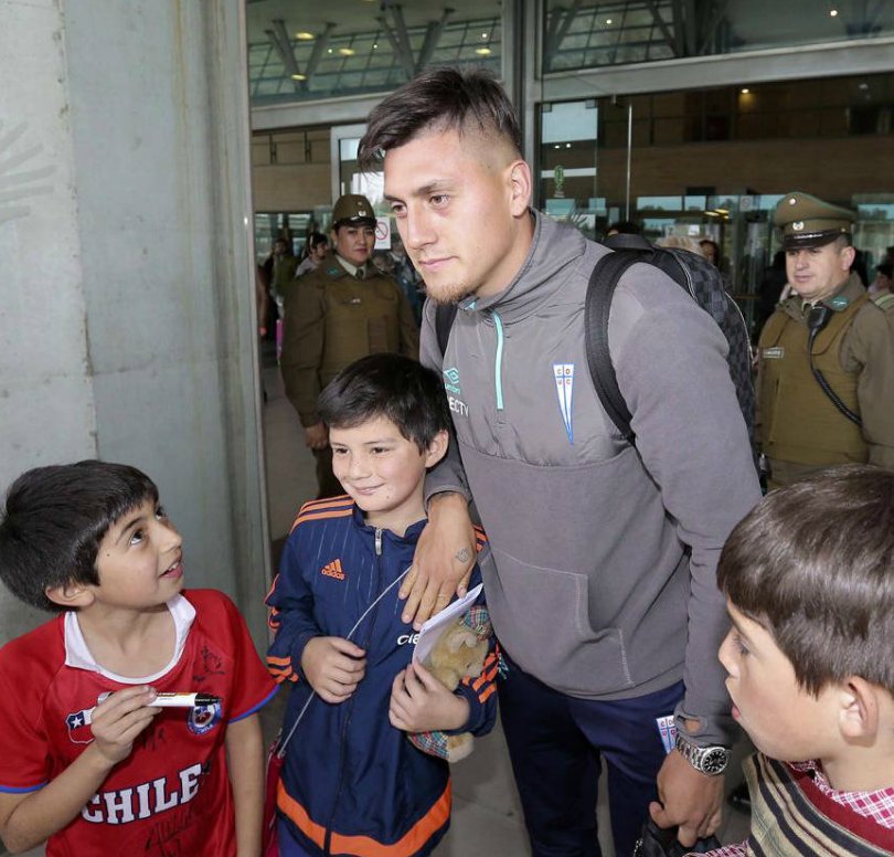 Resulta que el jugador cruzado se encontró con una serie de pequeños hinchas. Uno de ellos de la Universidad de Chile.