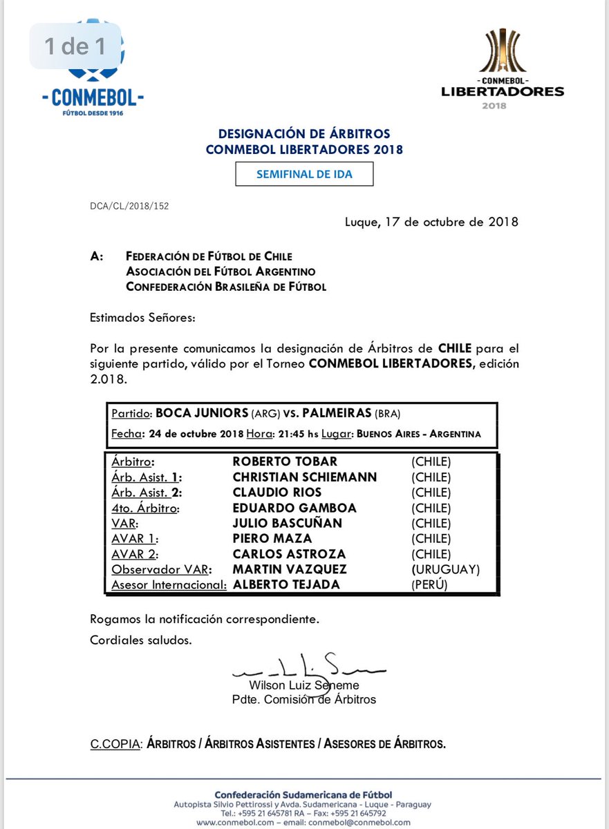 Copa Libertadores contará nuevamante con la presencia de árbitros chilenos. Y es que Roberto Tobar fue designado por la Conmebol para dirigir el partido entre Boca Juniors y Palmeiras correspondiente a semifinales del certamen continental.