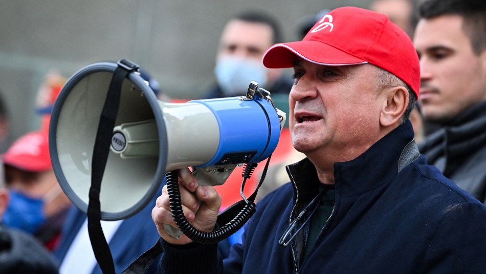 Numerosos manifestantes llevaban banderas serbias y también pancartas.