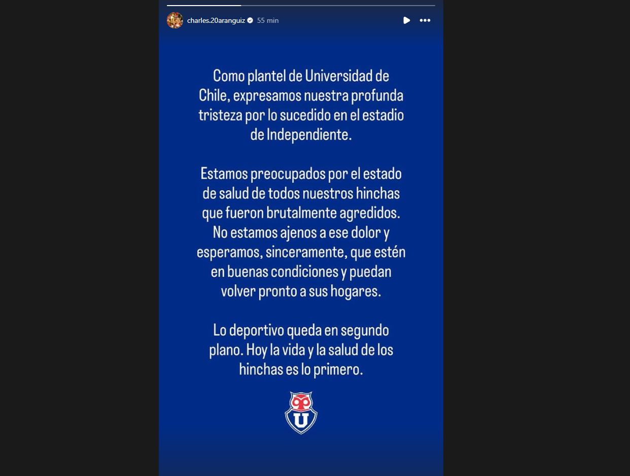 En el texto, indican que "como plantel de Universidad de Chile, expresamos nuestra profunda tristeza por lo sucedido en el estadio de Independiente".