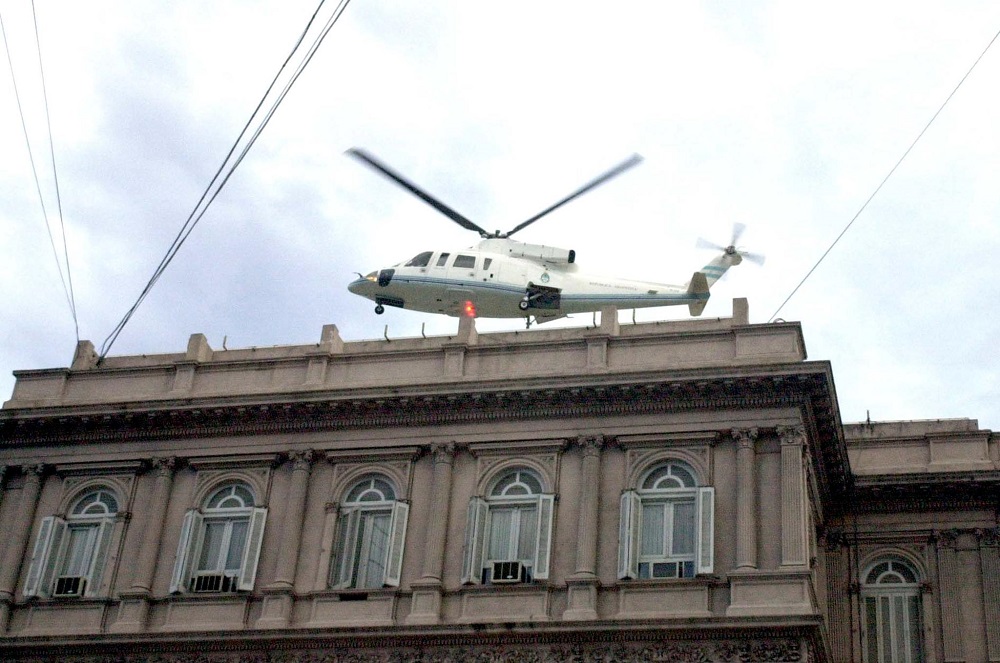 El 19 y 20 de diciembre de 2001 se desató una revuelta popular cuya represión dejó más de 30 muertos en el país, cinco de ellos en los alrededores de la Plaza de Mayo, pleno centro de Buenos Aires. De la Rúa abandonó la Casa Rosada en helicóptero, tras firmar su renuncia. Por estas muertes fue sobreseído en 2014 por la justicia que apuntó a su equipo de seguridad.