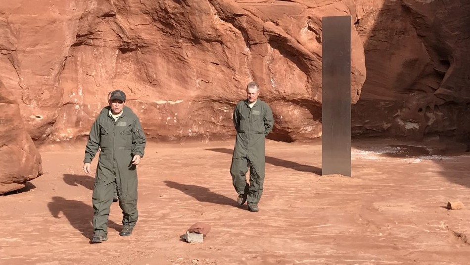 Tras aterrizar para investigar, los miembros de la tripulación del Departamento de Seguridad Pública de Utah encontraron "un monolito de metal instalado en el suelo", pero "ninguna indicación obvia de quién podría haber puesto el monolito allí".