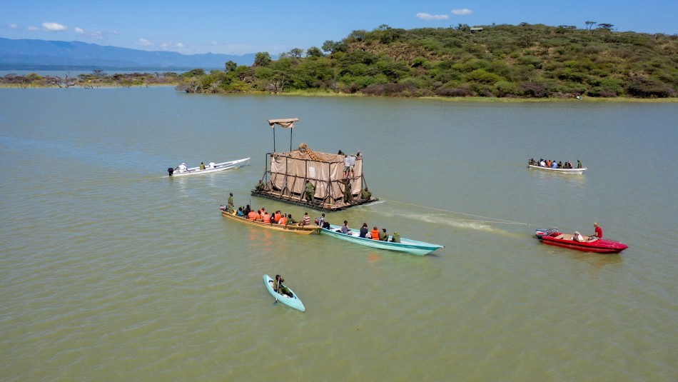 Utilizaron una barcaza de acero hecha a medida para transportar a la primera de las jirafas cuatro millas a su nuevo hogar, un santuario cercado de 4.400 acres dentro de Ruko Conservancy de 44.000 acres.