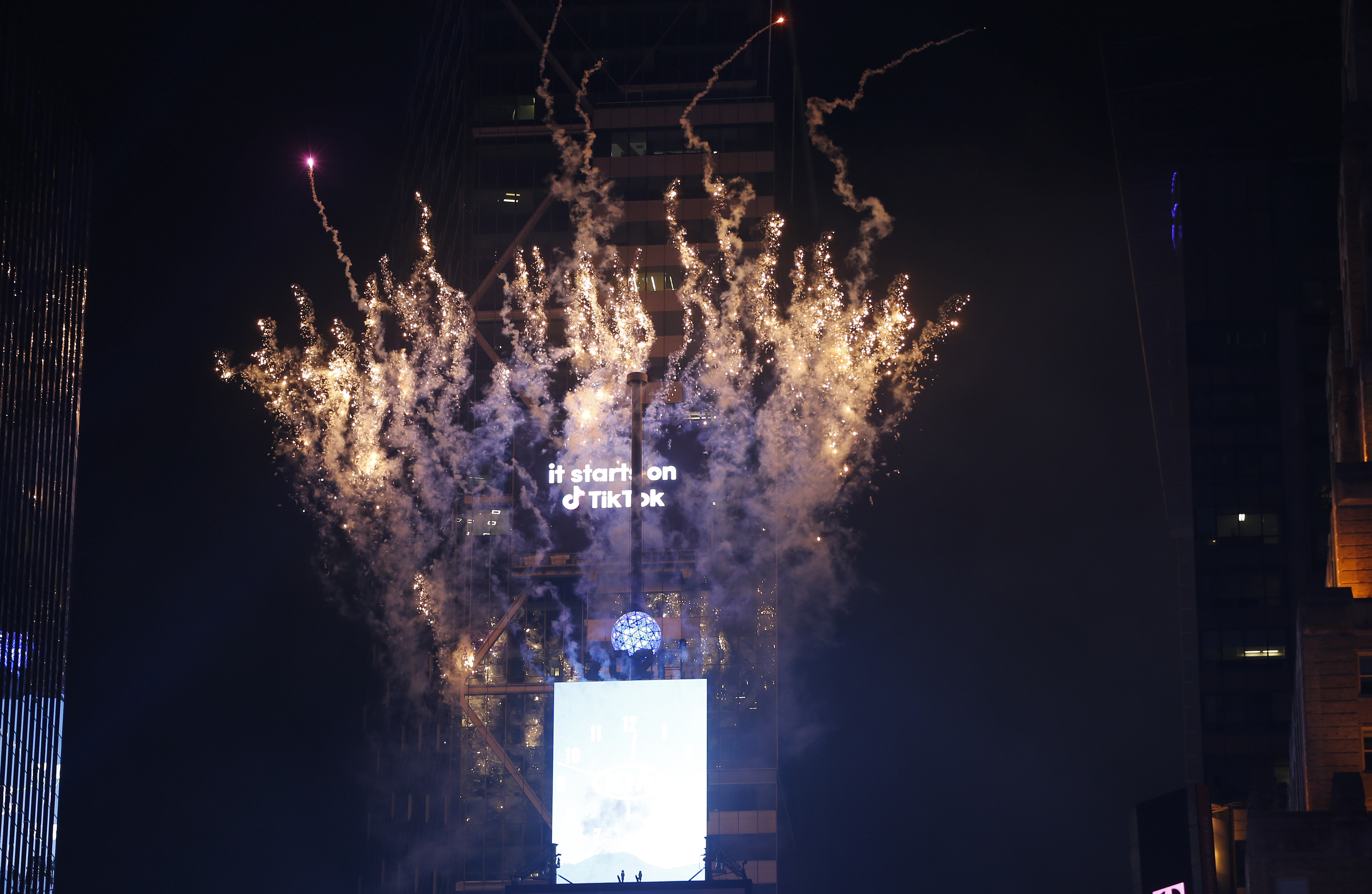 En Times Square, que cada 31 de diciembre rebosa de gente eufórica que disfruta la "caída de la bola" bajo una lluvia de papel picado, la multitud fue reemplazada por trabajadores de la primera línea contra la pandemia que fueron especialmente invitados y separados por vallados para asegurar el distanciamiento social.