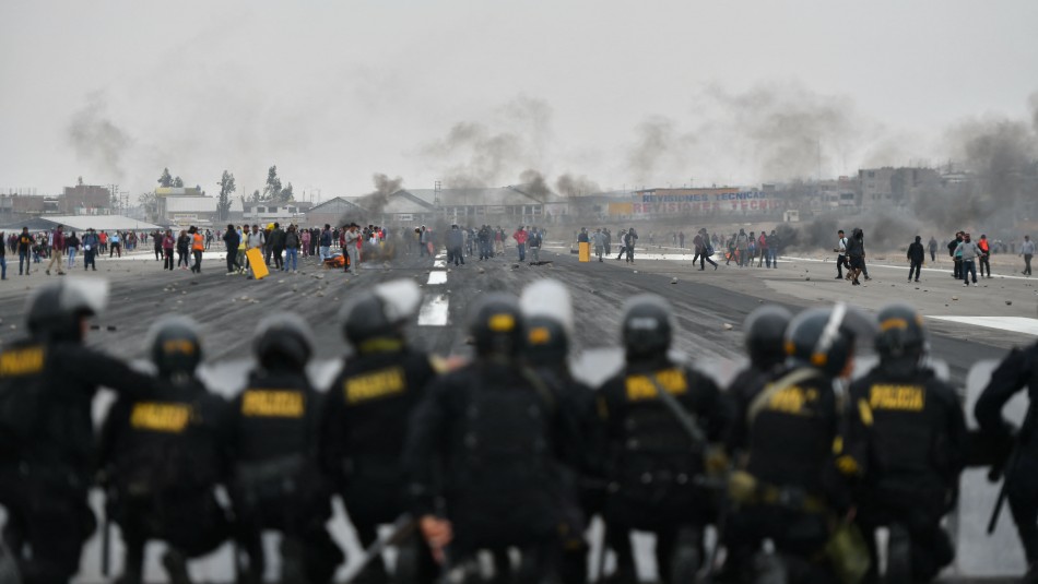 En la ciudad sur andina de Andahuaylas, el ministerio de Interior reportó dos personas fallecidas y una veintena de heridos, entre ellos un policía, tras violentos enfrentamientos en el intento de los manifestantes de tomar por asalto el aeropuerto de la ciudad.