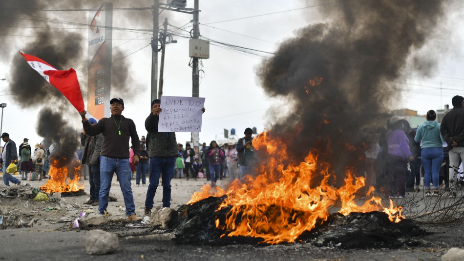 Con piedras, palos quemados y neumáticos ardiendo cientos de manifestantes bloquean la pista de aterrizaje del aeropuerto de Arequipa, segunda ciudad de Perú, para exigir la renuncia de la nueva presidenta Dina Boluarte y elecciones presidenciales y legislativas anticipadas.