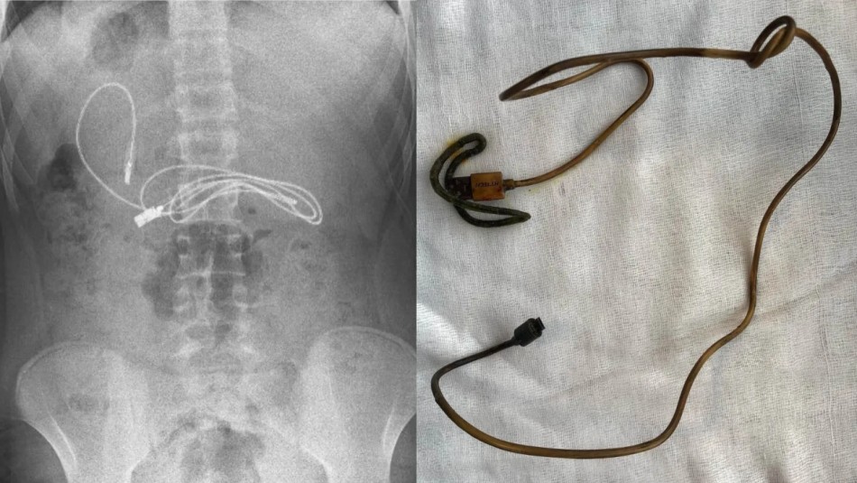 Tras observar los resultados, los médicos quedaron sorprendidos al encontrar un cable, que pertenecía al cargador de los audífonos del menor, dentro de su estómago.