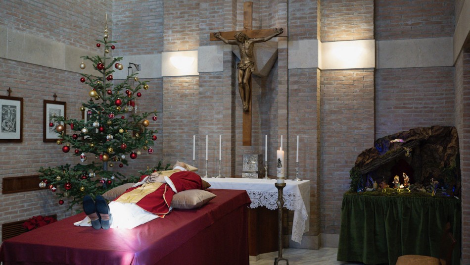 La sala de prensa del Vaticano difundió imágenes del cuerpo de Benedicto XVI, papa emérito que descansa en la capilla del Monasterio Mater Ecclesiae.