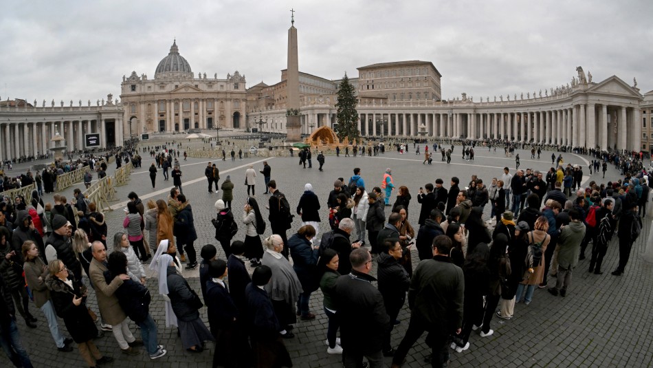 La larga fila llega hasta la inmensa Plaza de San Pedro y rodea las célebres columnas de la explanada, vigiladas por un importante dispositivo de seguridad y también por cientos de periodistas de todo el mundo llegados para cubrir el entierro del papa.