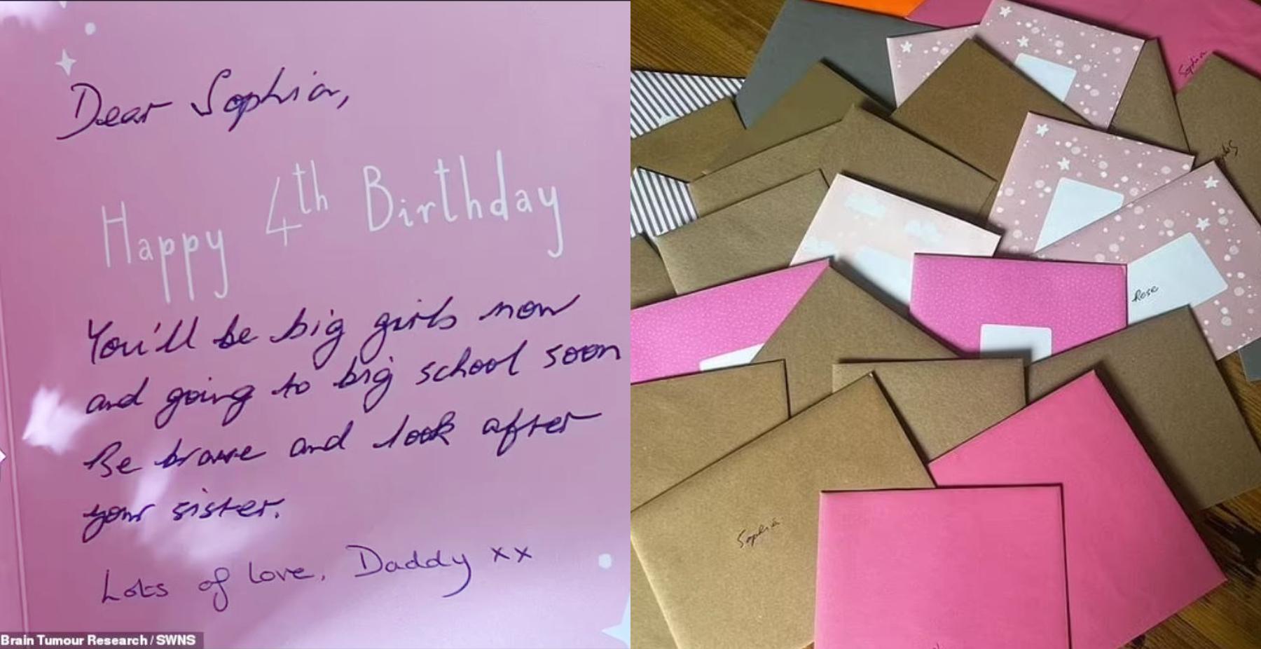 "Ahora serán niñas grandes y pronto irán a la escuela grande. Cuídate y cuida de tu hermana. Mucho amor, papá", dice la carta de cumpleaños de Sophia.