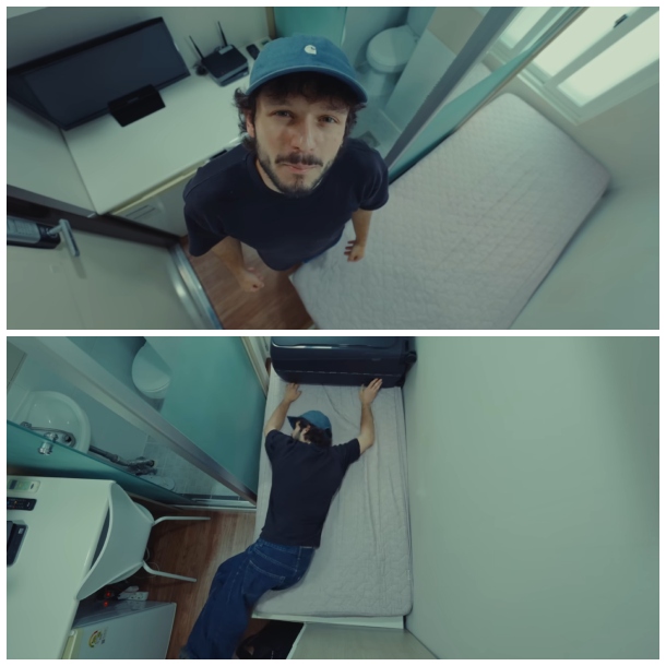 En el caso del youtuber, él alojó en una habitación de seis metros cuadrados, pero hay recintos en los que apenas cabe una cama y un escritorio, como se aprecia en la siguiente imagen: