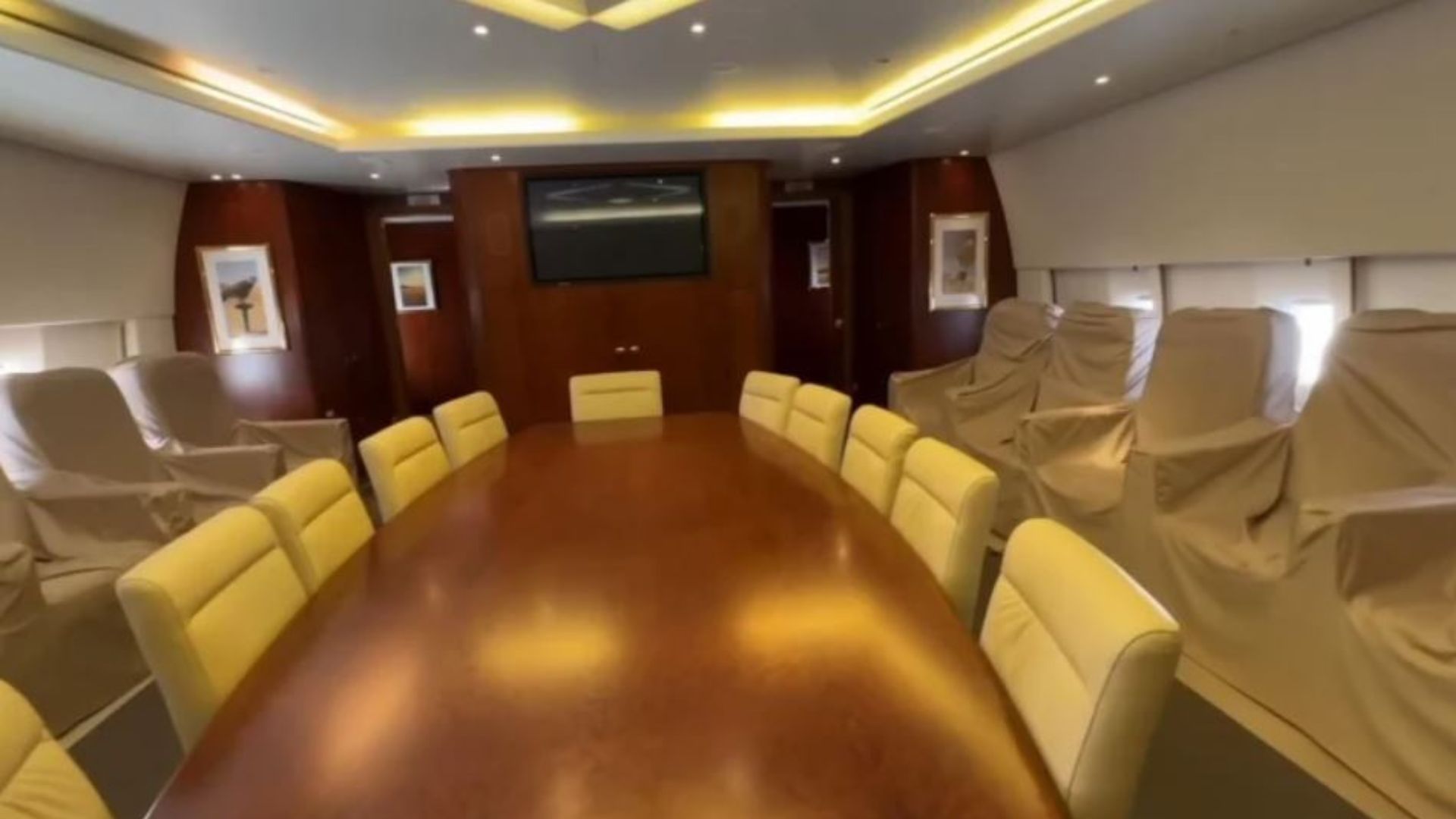 Sus detalles interiores se conocen gracias al youtuber Sam Chui, especialista en aviación que accedió a recorrerlo. “Este avión es todo un sueño, es hermoso”, describió al recorrer la aeronave.
