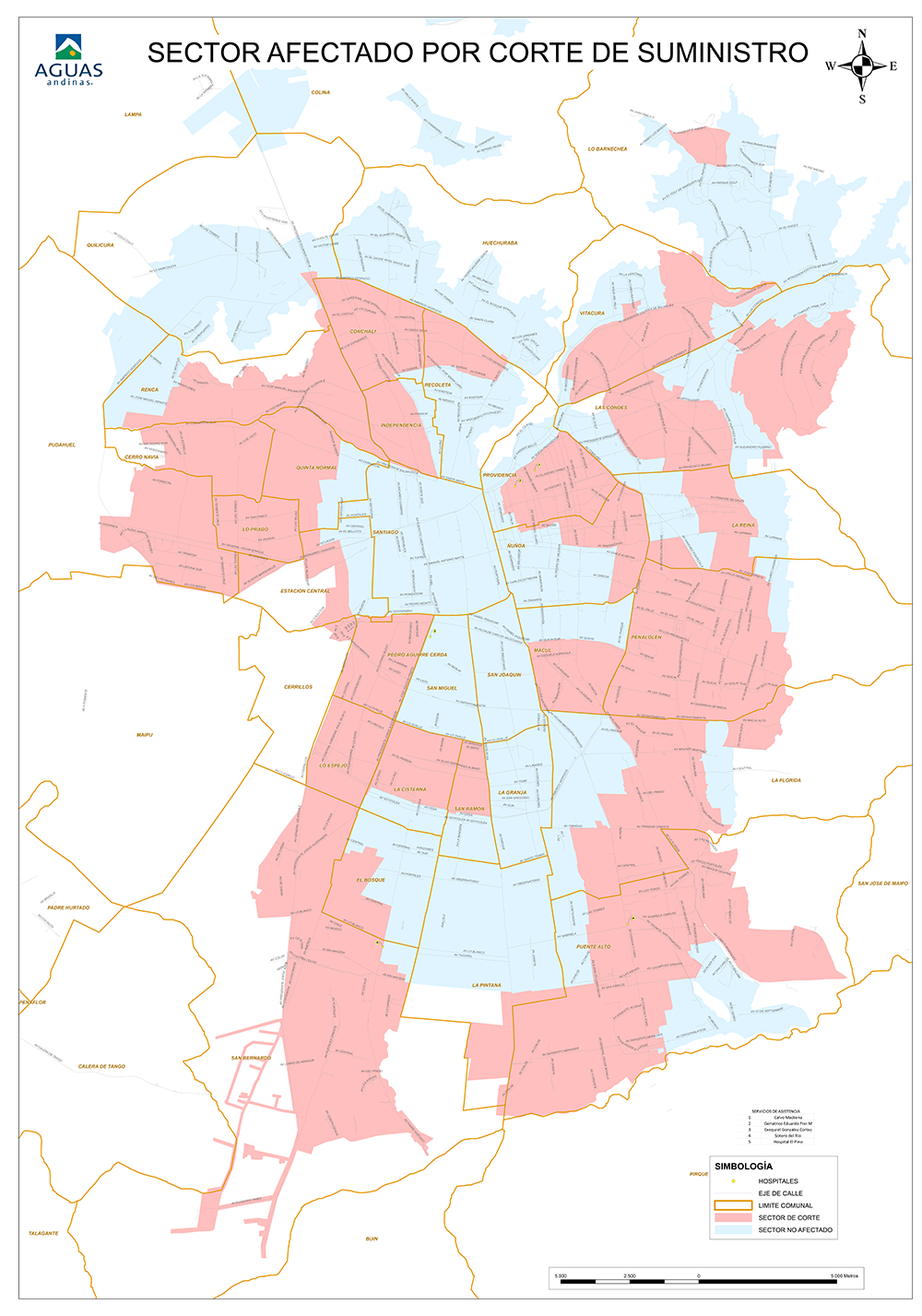 20:48 Aguas Andinas informó que el 90% de los clientes afectados por el corte de suministro de hoy ya cuentan con el servicio reestablecido. Los sectores aún afectados están en las comunas de Conchalí, Independencia, Recoleta y Renca.