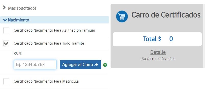 Para obtenerlo, las personas deben ingresar al sitio web https://www.registrocivil.cl/ y seleccionar el certificado que se desee obtener, en este caso es el de nacimiento. Además se debe escoger una de las opciones que otorga el sistema.