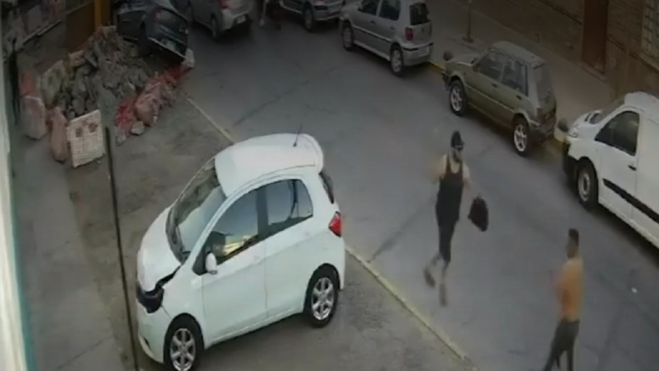 Una violenta pelea y un supuesto intento de atropello fue registrado por una cámara de seguridad en la comuna de Estación Central, centro de Santiago. El hecho fue protagonizado este lunes por dos hombres, uno de los cuales habría intentado arrollar a su oponente con un vehículo a toda velocidad, sin lograr su cometido, pero volcándose tras impactar una serie de escombros.
