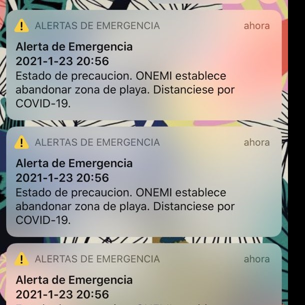 "Alerta de emergencia. Onemi establece abandonar zona de playa. Distánciese por Covid-19", fue el mensaje entregado por el organismo y que fue recibido en distintos puntos del país.