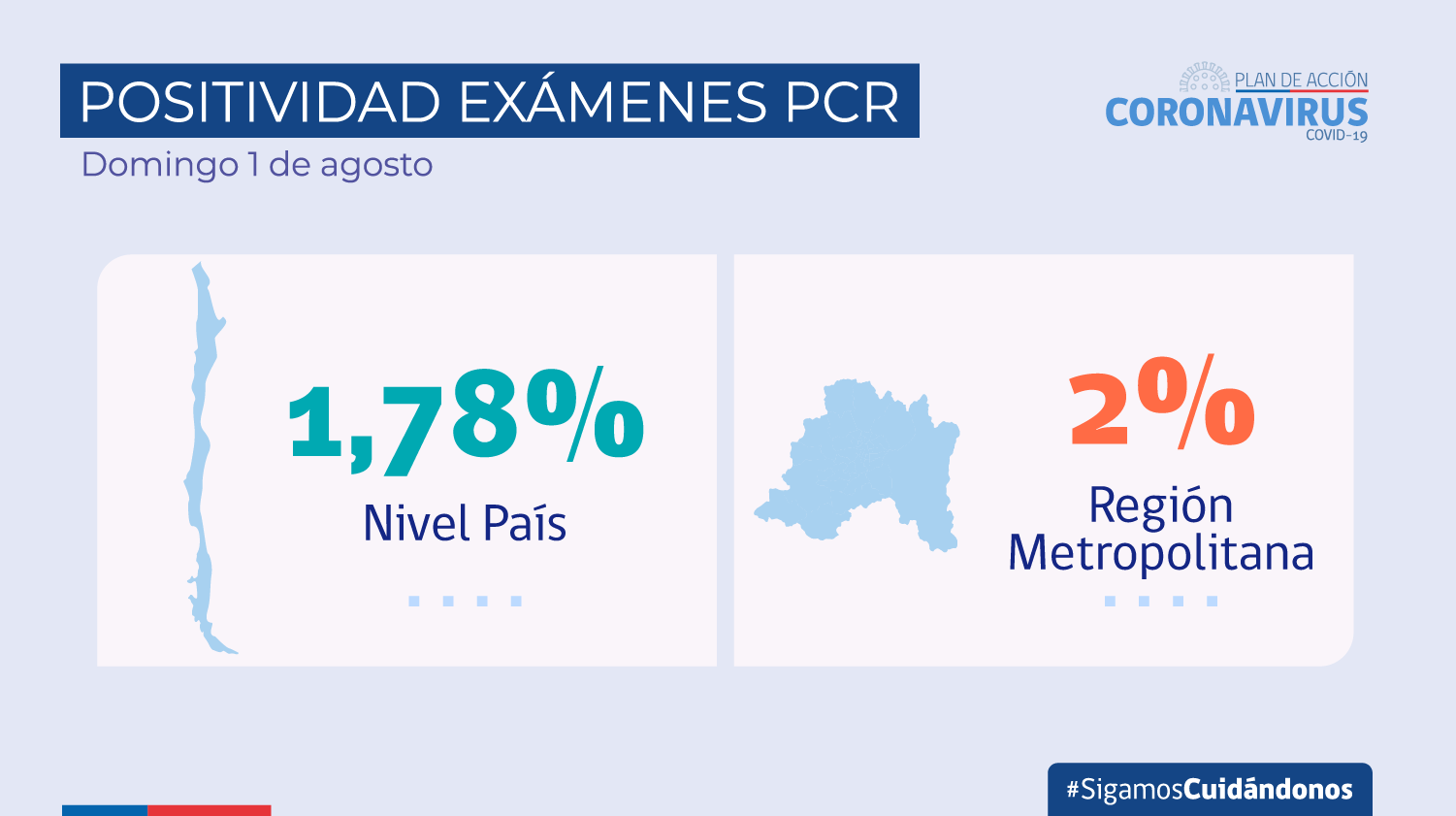 Minsal reportó positividad más baja desde el inicio de la pandemia: Agosto comenzó con un 1,78%