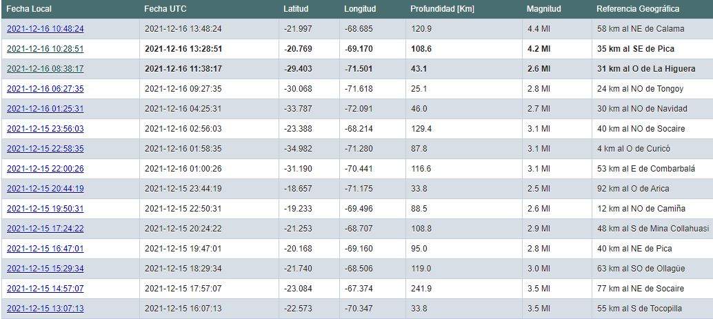 Un temblor se registró a las 10:28 horas de este jueves 16 de diciembre en la zona norte del país, específicamente en la Región de Tarapacá.