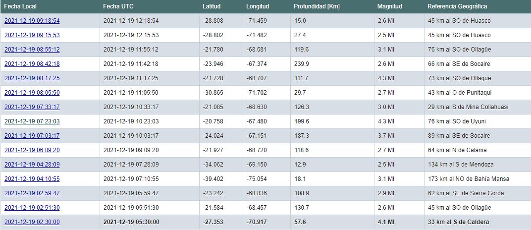 Un temblor se registró a las 07:23 horas de este domingo 19 de diciembre en la zona norte del país, específicamente en la Región Antofagasta.