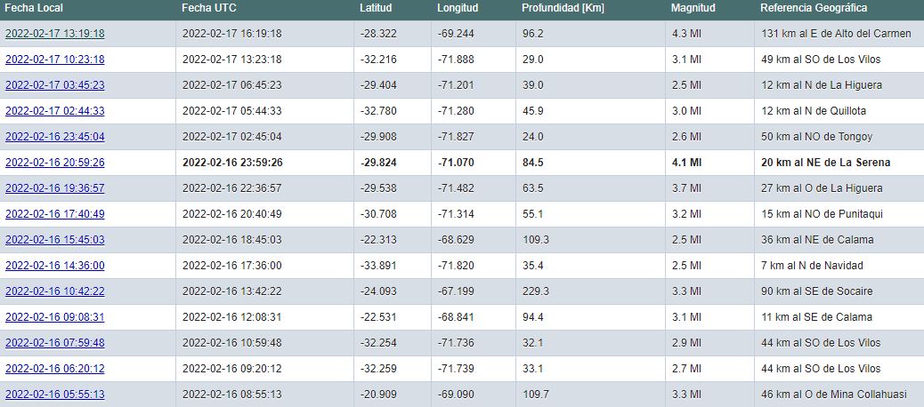 Un temblor se registró a las 13:19 horas de este jueves 17 de febrero en la zona norte del país, específicamente en la Región de Atacama.