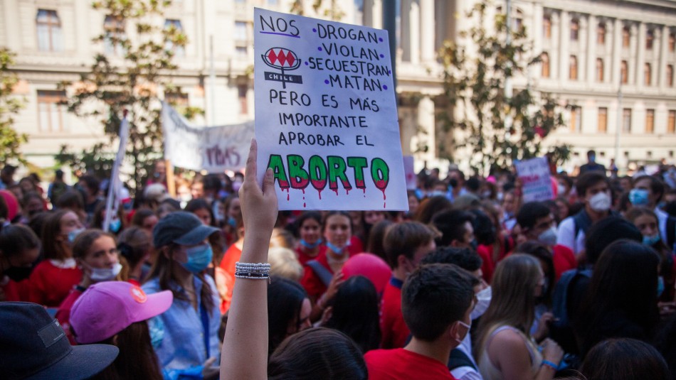La tarde de este lunes, diversas organizaciones contrarias al aborto se manifestaron en las afueras de la sede de la Convención Constitucional, en el centro de Santiago, en rechazo a las normas aprobadas para el borrador de la Nueva Constitución.