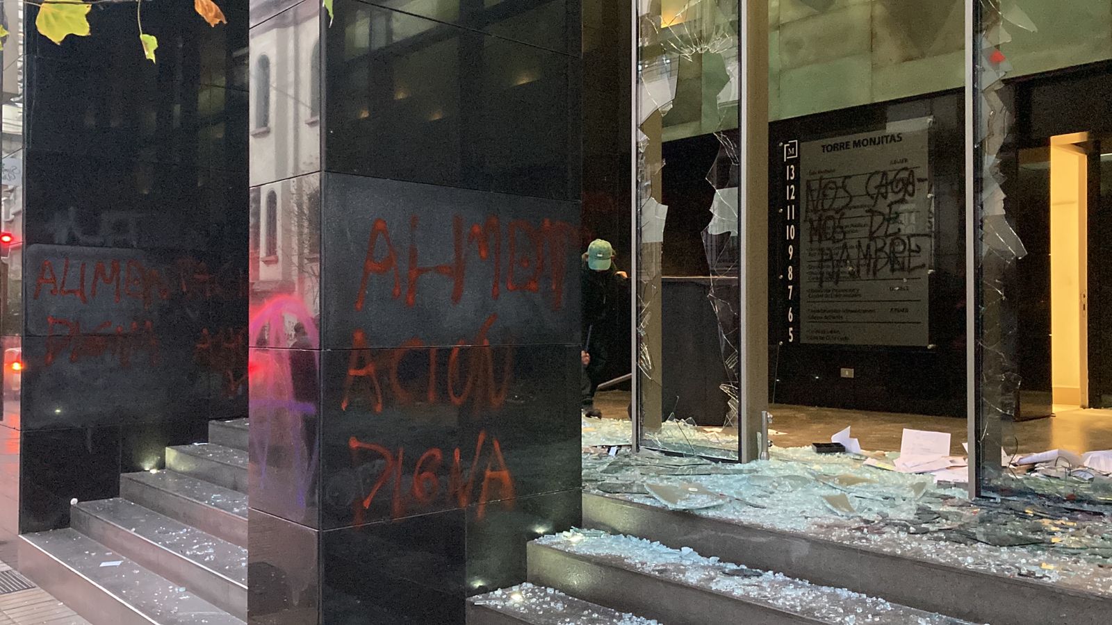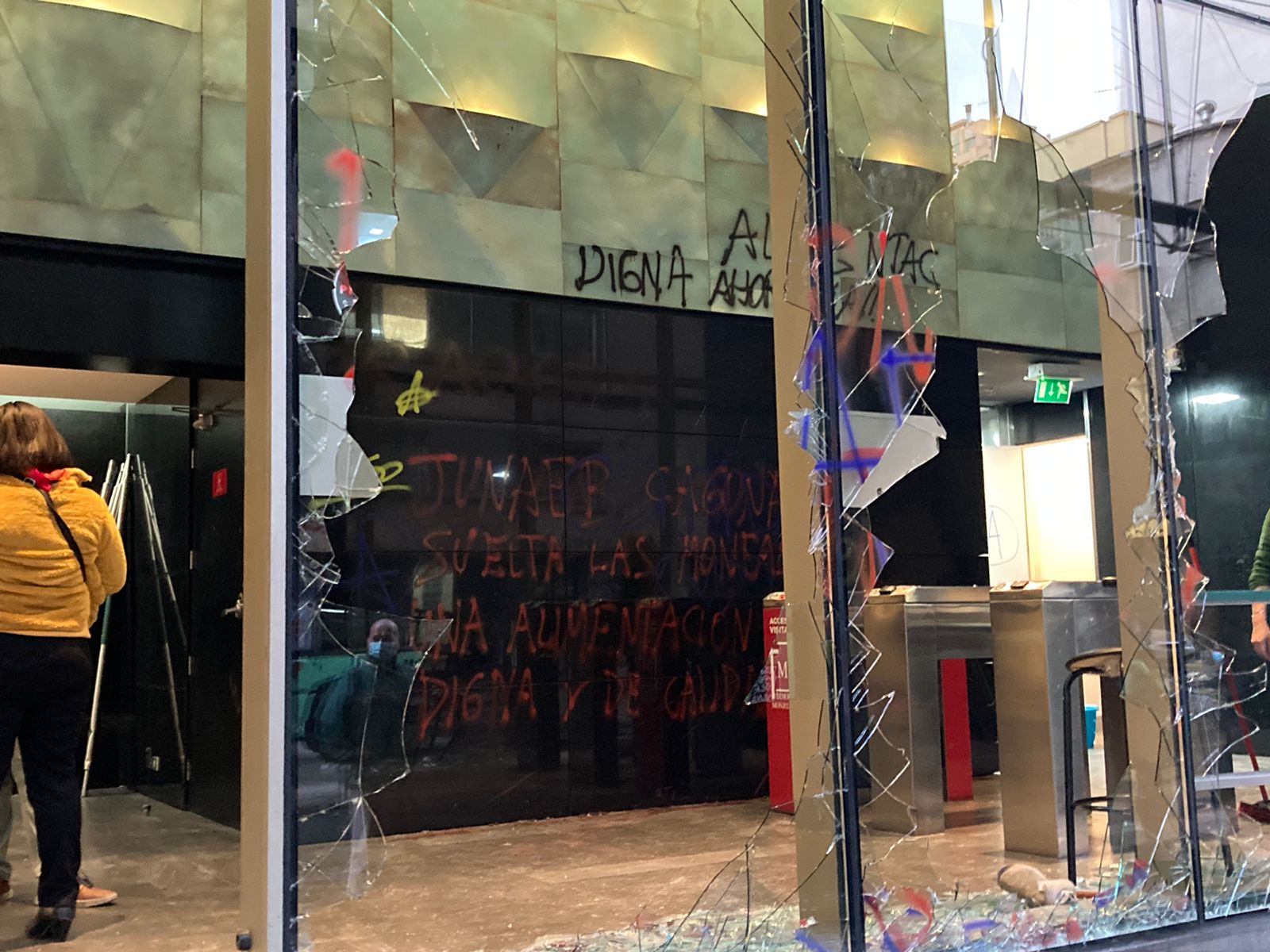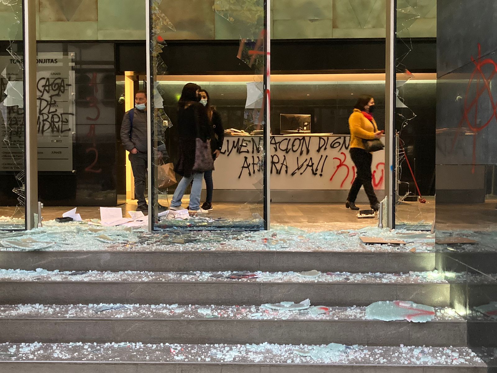 En el hecho, los vidrios de los ventanales de la recepción fueron destruidos, mientras que tanto el interior como exterior del inmueble sufrió una serie de rayados.