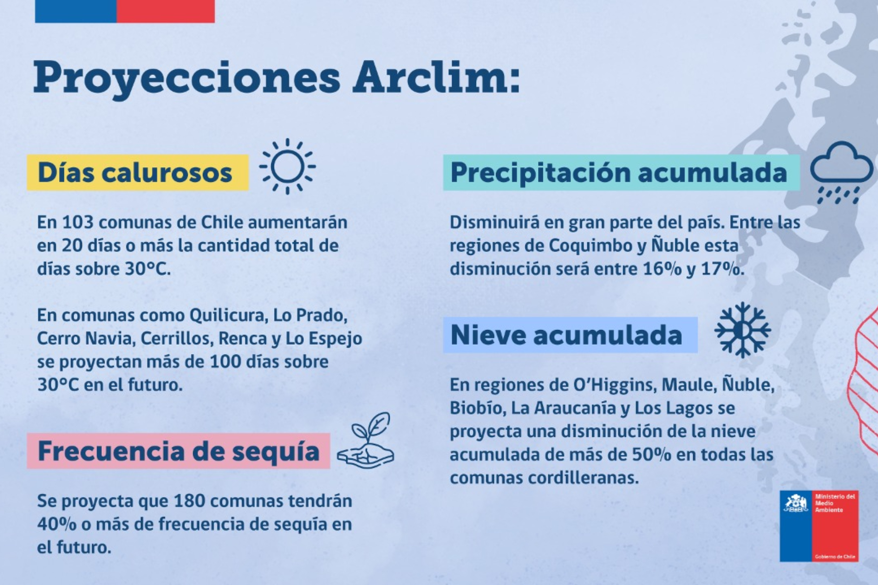 Junto a esto se estima que 180 comunas tendrán 40% o más tendencia de sequía en el futuro, aumentando las olas de calor a más de 20 días seguidos.