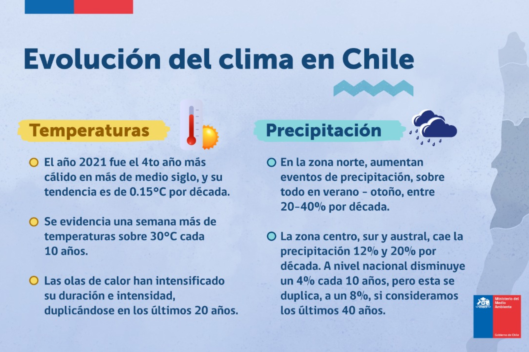 El ministerio de Medio Ambiente junto a la Dirección Meteorológica de Chile (DMC) presentaron importantes datos y proyecciones de las consecuencias del cambio climático en el país, especialmente por la sequía que nos afecta severamente.