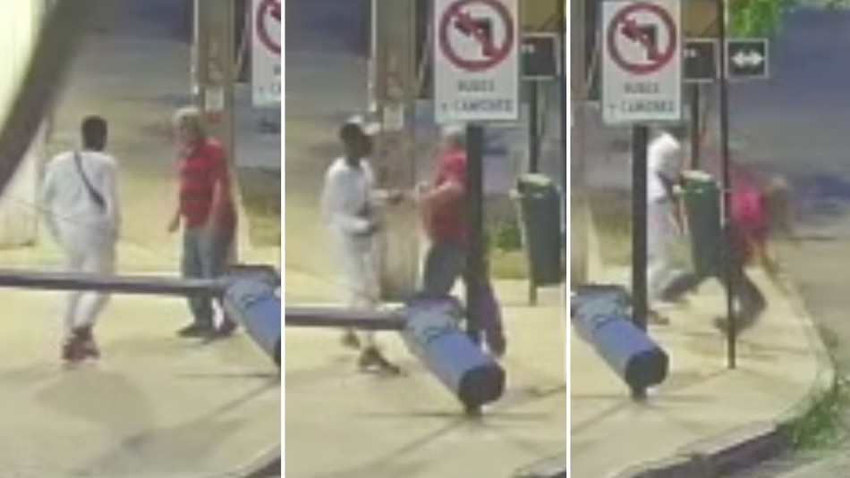 El hecho ocurrió en la avenida San Alfonso 2230, y quedó registrado por una de las cámaras de seguridad del sector, en la que se ve a la víctima -identificada como Manuel Lobos- doblar en una esquina, al mismo tiempo que es increpado por una persona de blanco.