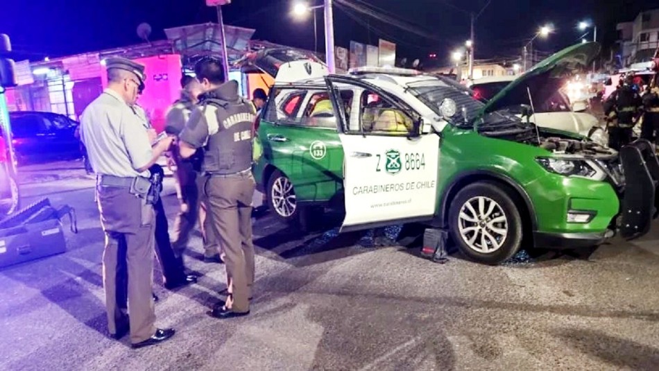 De hecho, por esta situación, personal de Bomberos debió asistir para rescatar a los carabineros afectados desde el interior de la radiopatrulla afectada por la colisión.