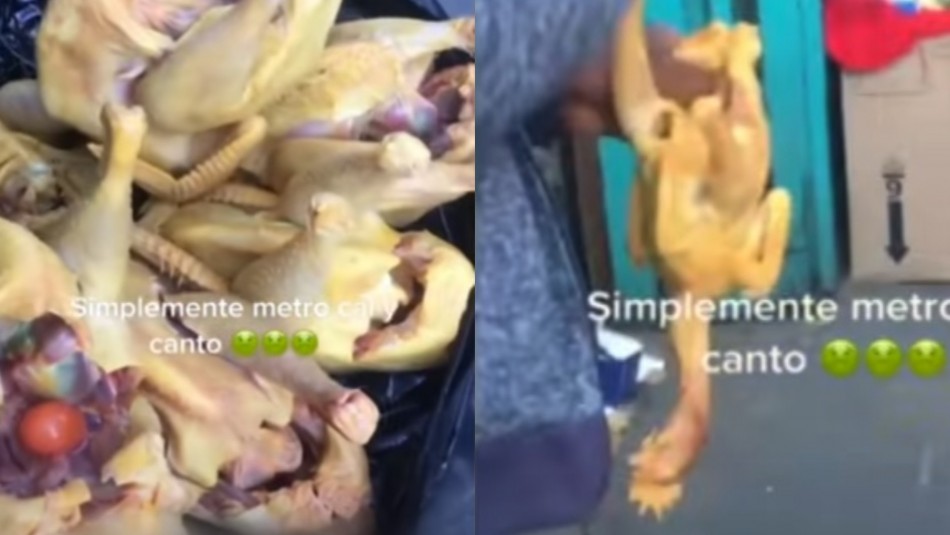 Denuncian faena y venta de pollos afuera del Metro de Santiago: Sin medidas de higiene y bajo altas temperaturas