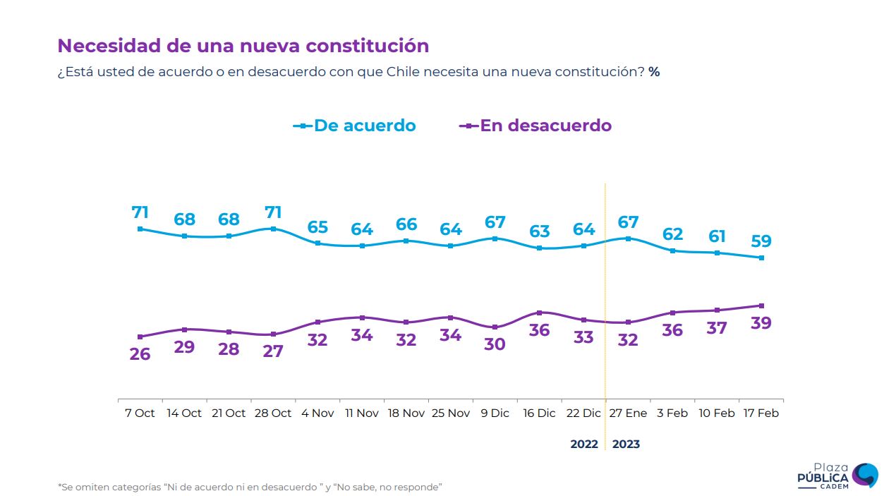 El porcentaje de personas que están de acuerdo con una nueva constitución ha bajado consistentemente desde la encuesta del 27 de enero.