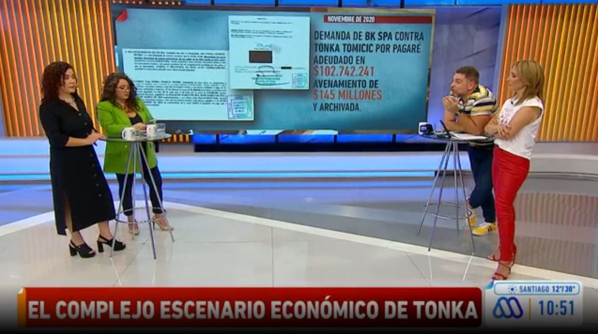 "El equipo de Mega Investiga revisó en el Poder Judicial todas las demandas contra Tomicic por no pago de deudas, hay al menos 14 demandas que tuvo que enfrentar entre el año 2020 y el año 2021 por no pagar deudas. Estamos hablando, al menos, de 2.300 millones de pesos, y esto provocó que tuvo que enfrentar varios intentos de embargo", señaló la editora de Mega Investiga, Paulette Desormeaux.