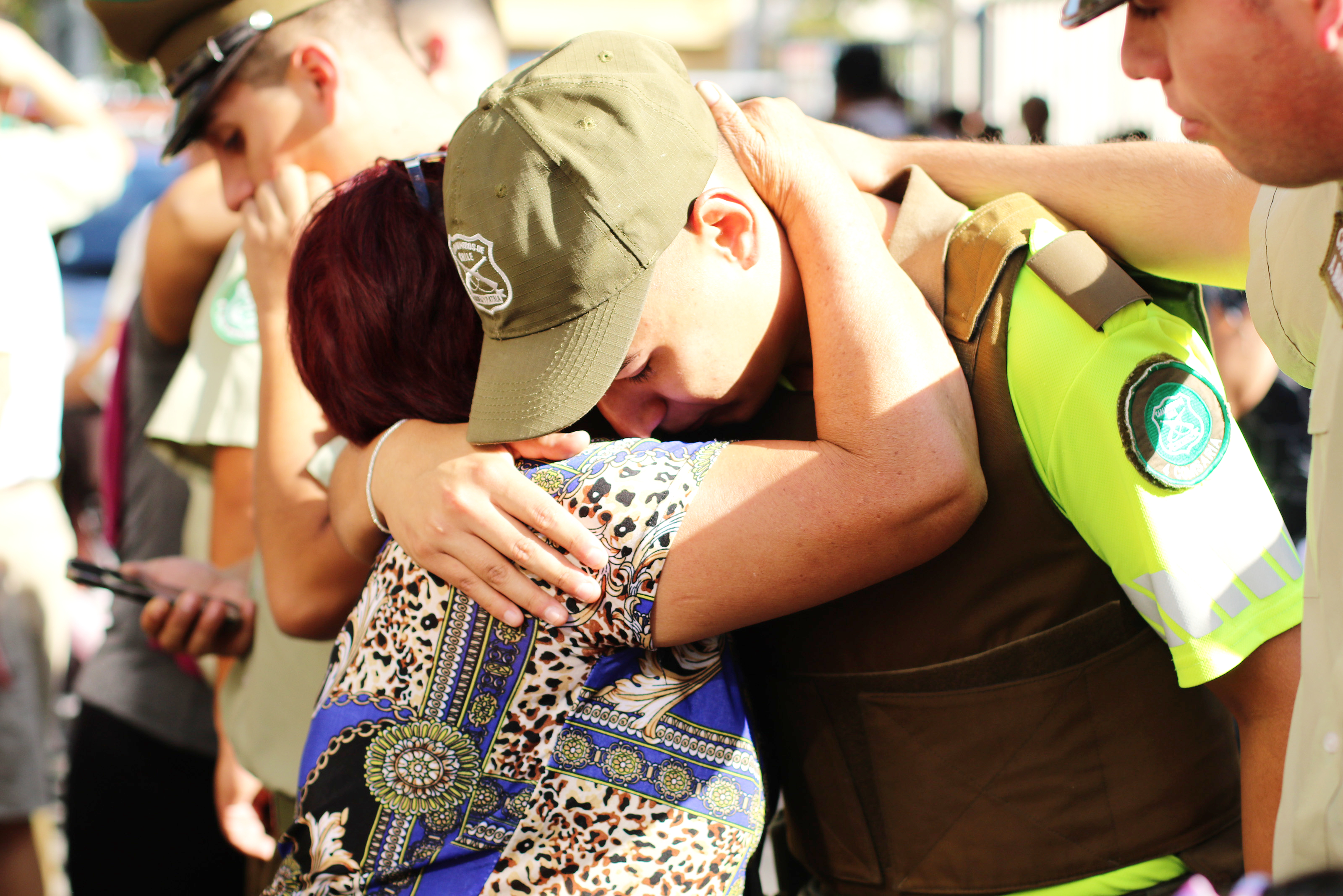 Una de las imágenes más emotivas de esta jornada se dio cuando la carroza fúnebre pasó por las afueras de las dependencias de la Cuarta Comisaría de Santiago, unidad policial a la que pertenecía el nuevo mártir de Carabineros, donde decenas de uniformados lo homenajearon por última vez, muchos de ellos sin poder contener las lágrimas.
