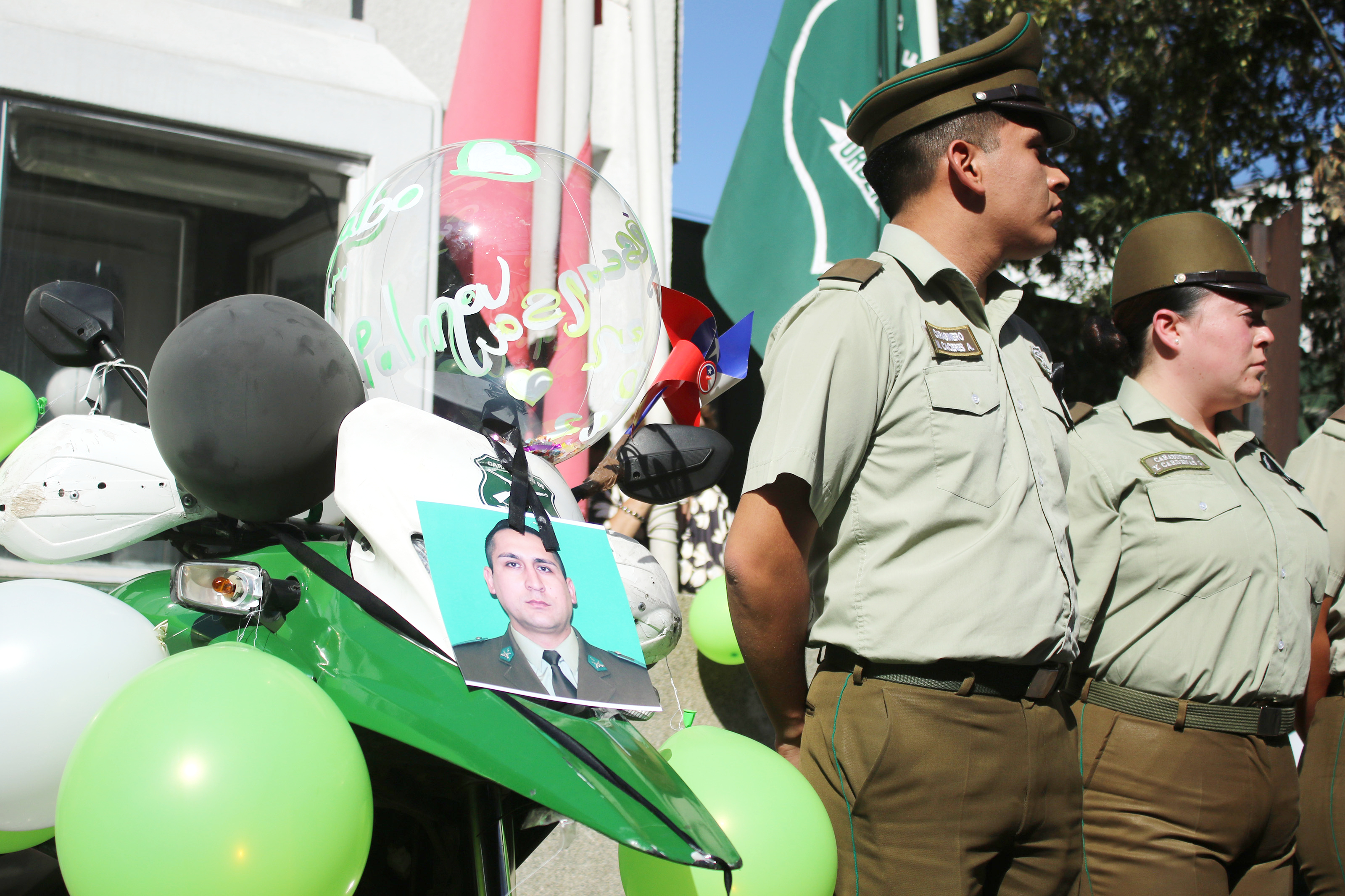 Su moto con globos de colores, una cinta negra y foto de mártir: El homenaje de Carabineros al funcionario asesinado