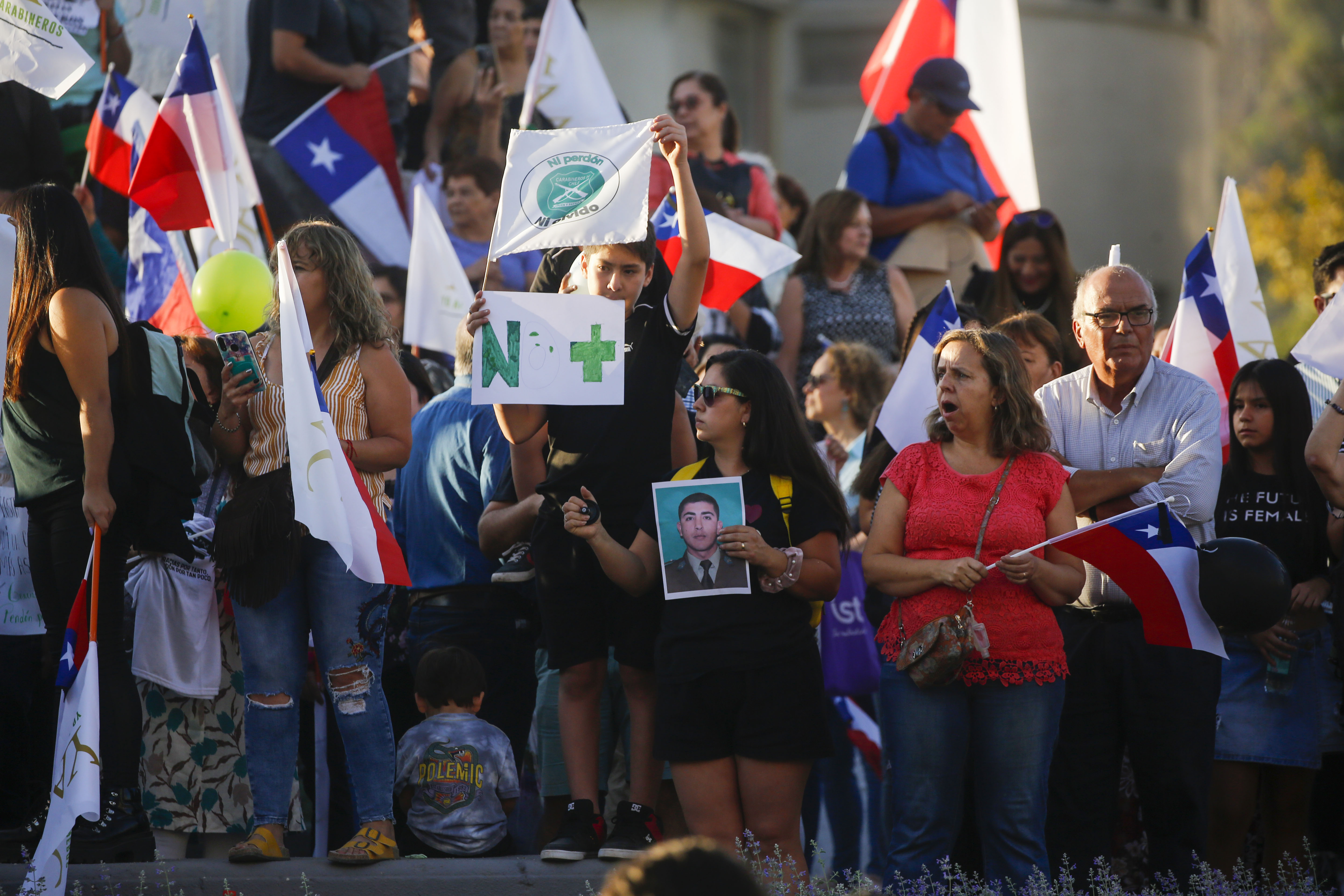 Manifestantes se congregan en Plaza Baquedano en apoyo a Carabineros tras nuevo mártir