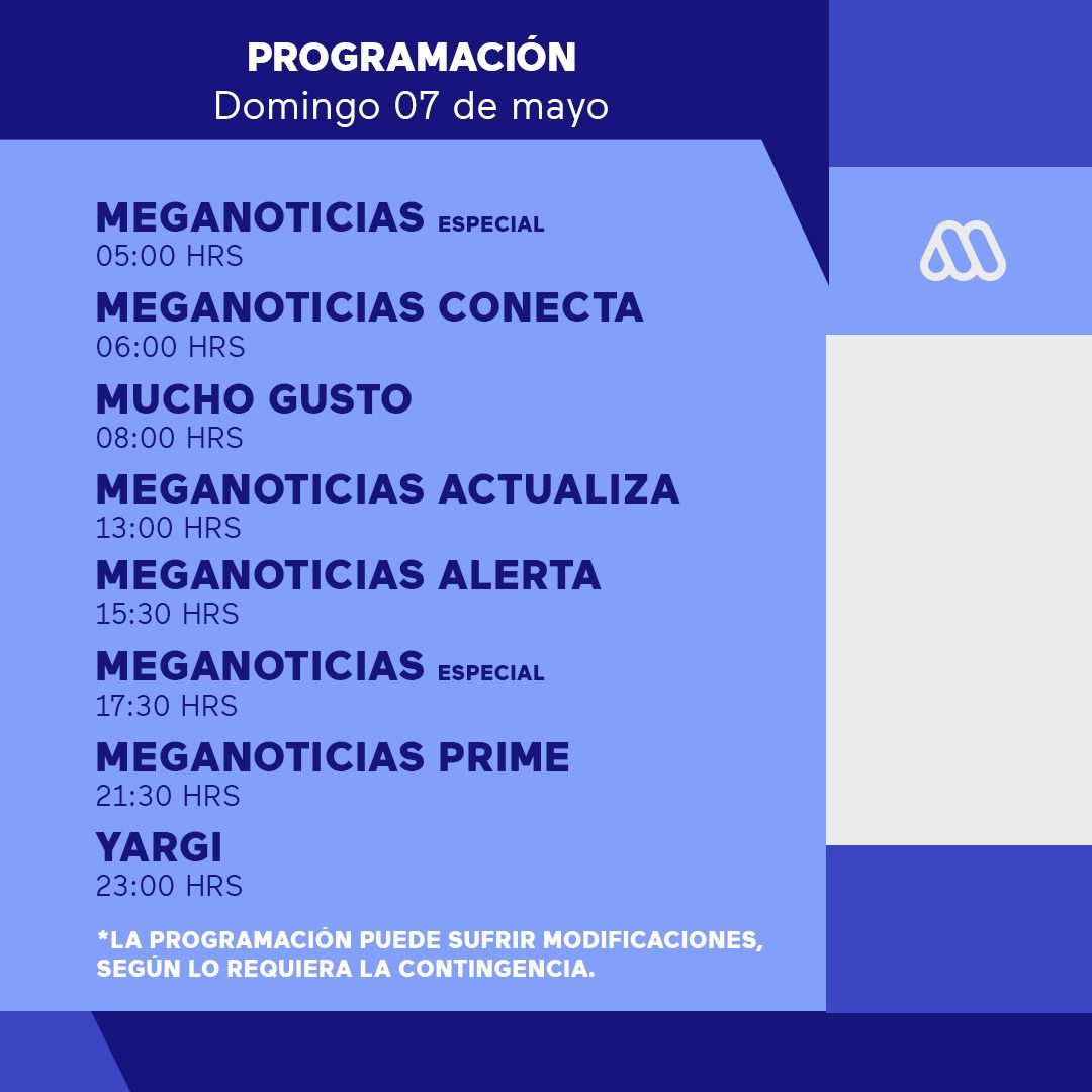 Para este domingo 7 de Mayo, la programación quedará de la siguiente manera: