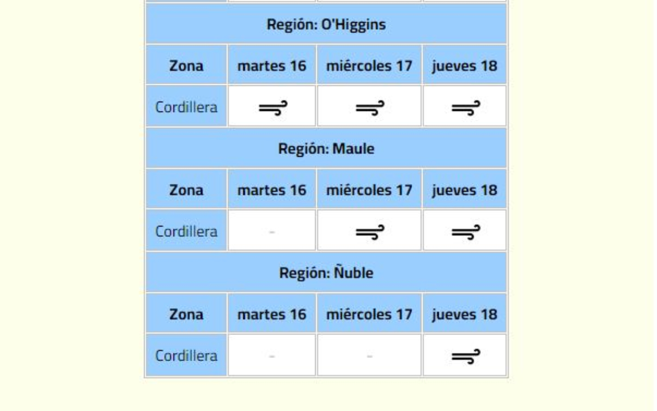 En el caso de las cinco regiones mencionadas, esto afectará a los sectores de "Cordillera".