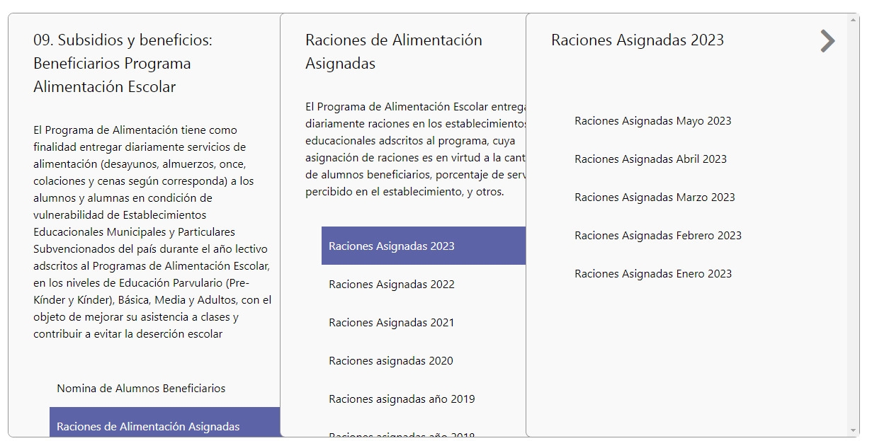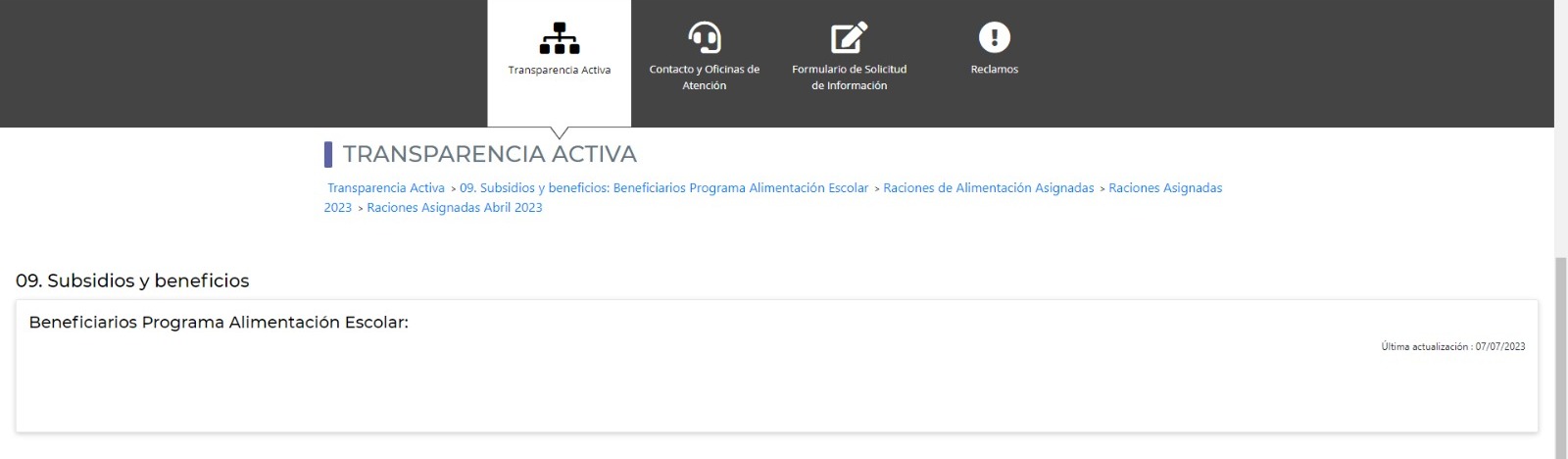 La página de Transparencia de Junaeb fue actualizada hoy viernes 7 de julio. Sin embargo, el último reporte publicado de las raciones asignadas del PAE corresponde a enero de este año. Las raciones de alimentación asignadas de dicho programa, corresponden a información de subsidios y beneficios del organismo público. Por ello, deben estar publicados.