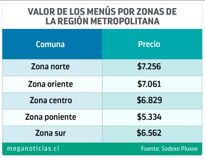 El análisis también distingue los costos en zonas del Gran Santiago y hace la diferenciación entre los menús que son denominados "económicos" y "ejecutivos", detallando las comidas que brindan los restaurantes a la hora de poner el plato sobre la mesa.