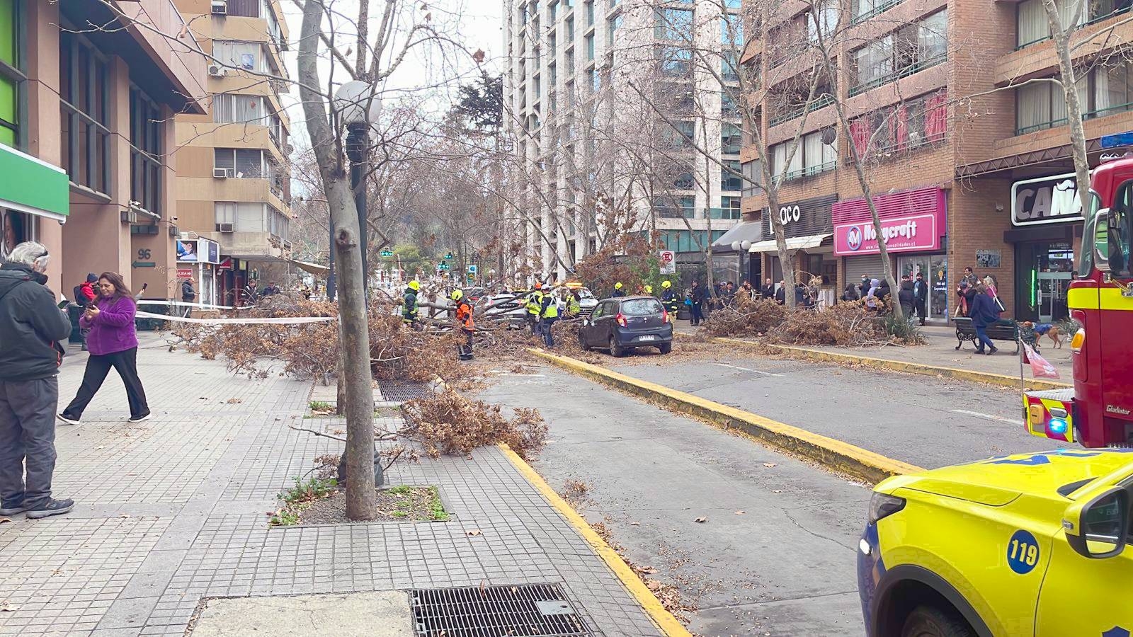 No solo las lluvias han afectado a la Región Metropolitana la jornada de este martes, sino también fuertes vientos, en el marco del sistema frontal que azota a la zona centro-sur del país.