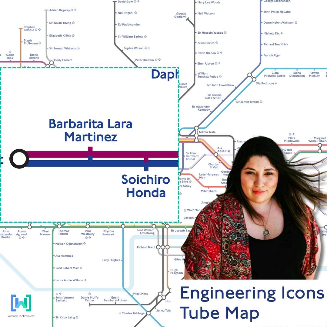 "El Metro de Londres, en conjunto con la Real Academia de Ingeniera, rehicieron el mapa del Metro de Londres para transformarlo en el mapa de los íconos de la ingeniería, así que todas las estaciones tienen un nombre de algún icono de la ingeniería del mundo", explicó Lara, quien es parte de los 274 íconos mundiales reconocidos en este mapa conmemorativo.